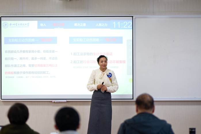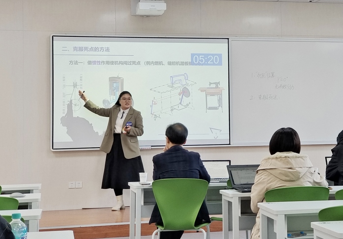 本届学校青教赛分文科组、理工科组、实验组,各学院共选送37名选手参赛,决赛现场随机抽签教学内容,全方位检验了参赛选手的综合能力。李丽红的参赛课程“平面四杆机构的主要工作特性”以实例引导,讲解生动,重难点通俗易懂。