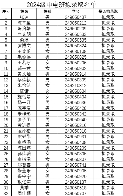 计算机学院2024级中电班拟录取名单公示