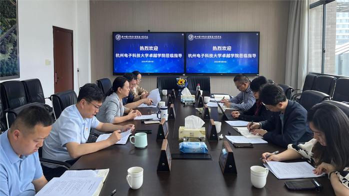 为推进高等教育高质量发展,探索本科人才跨校联合培养模式,58日,杭州电子科技大学卓越学院院长薛凌云、学院党委副书记张君辉、王震教授一行莅临我院研讨交流。学院党委书记王艳主持座谈会,副院长徐毅鹏、党委副书记彭萌萌及相关职能部门负责人参加座谈交流。