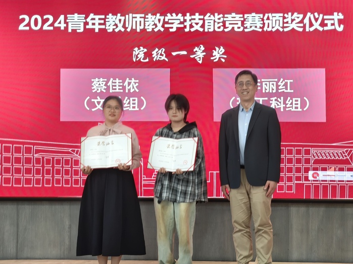 活动伊始,姚美琴对过去一年青年教师教学竞赛成绩、青年教师助讲培养工作进行了回顾总结。随后,徐毅鹏为在2024年青年教师教学技能竞赛中荣获校级一、二等奖院级一、二等奖教师颁发荣誉证书,人事处处长曾昕为2024年青年教师讲培养的优秀学员颁发荣誉证书。