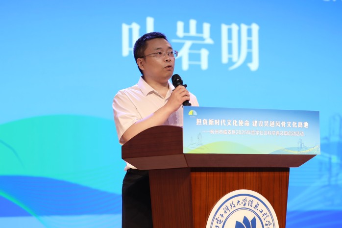 活动现场,叶岩明致欢迎辞。他首先代表我院对莅临活动的领导嘉宾表示热烈欢迎,并对临安区委对我院的关心与支持表示感谢。叶岩明表示,本次社科普及周活动展示的多项优秀研究成果,代表了临安社科工作者、高校师生扎根吴越故土、服务时代需求的学术担当,既彰显了临安社科界“把论文写在青山绿水间”的务实品格,更展现了新时代社科工作者“弄潮儿向涛头立”的精神风貌。叶岩明强调,学院将以此次社科普及周为契机,继续传承发展中国特色哲学社会科学,推动校地社科理论研究与实践创新实现高质量发展。