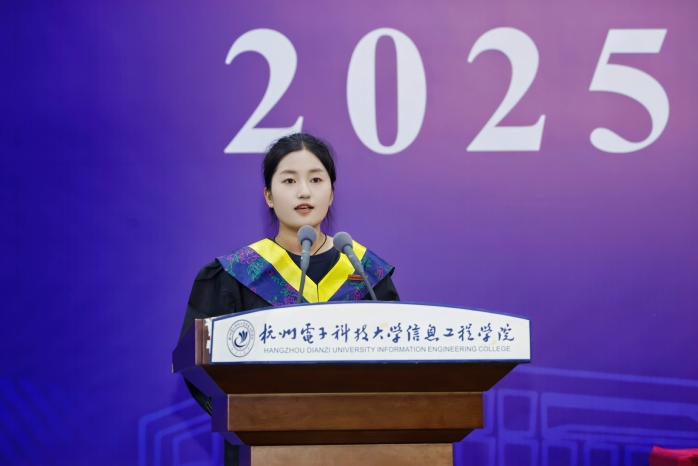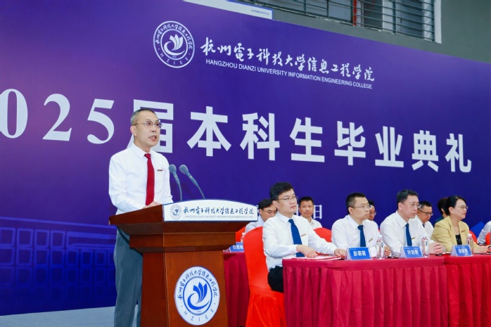钱波在2025届毕业典礼上,向3039名毕业生表示热烈祝贺并深情寄语。她对学子们提出了三点希望:传承浙江精神,勇立时代潮;赓续杭电品格,坚守初心使命;厚植信工力量,立德修身济世。钱波表示,信息工程学院永远是大家坚强的后盾,祝愿大家乘风破浪,为强国复兴贡献青春力量。