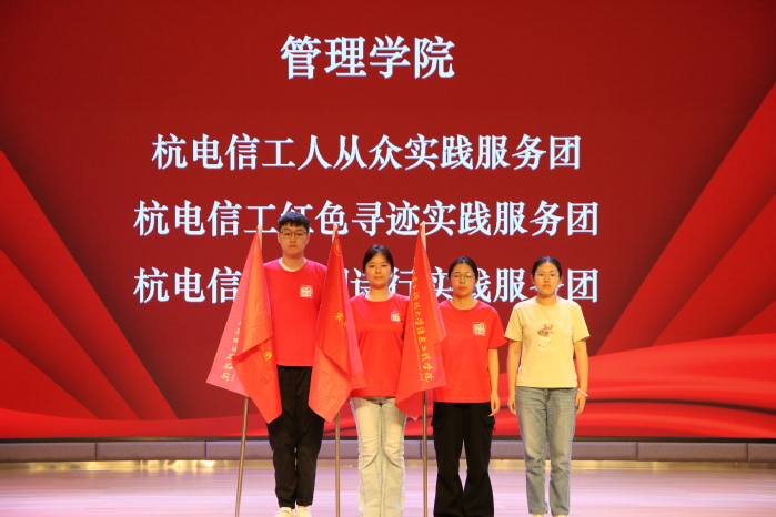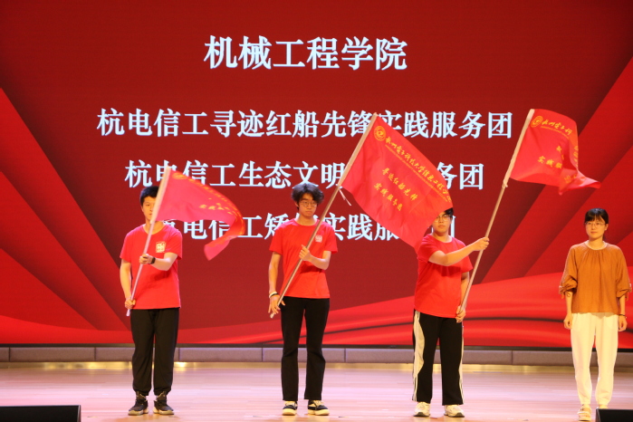 出征仪式上,院团委及各二级学院代表上台为暑期社会实践重点团队授旗。旗帜引领方向,使命凝聚力量,激励着每一位实践团成员在实践中挺膺担当,砥砺前行。