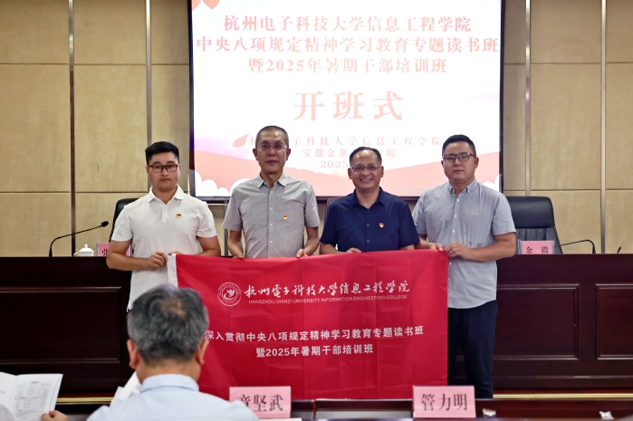 7月10日,我院“循迹溯源学思想强党性”深入贯彻中央八项规定精神学习教育专题读书班暨2025年暑期干部培训(第一期)在安徽金寨干部学院顺利举行。学院院长管力明、部分中层干部、二级学院办公室主任、专兼职组织员、教师党支部书记、骨干教师代表以及金寨干部学院院委委员余微、干部学院教师张武伟等50余人参加开班仪式。仪式由张武伟主持。
