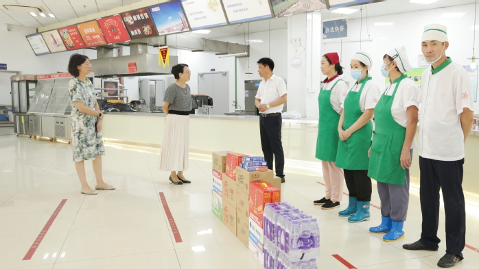 骄阳似火,朱夏方殷。7月21日上午,学院党委书记王艳、副院长郑皓、副书记彭萌萌、副院长叶岩明、副院长卢文军在学院工会、党政办公室和各值班部门负责人陪同下率队深入校园一线,慰问暑期坚守岗位的一线教职员工与备赛团队,代表学院送上诚挚关怀与清凉慰问品。
