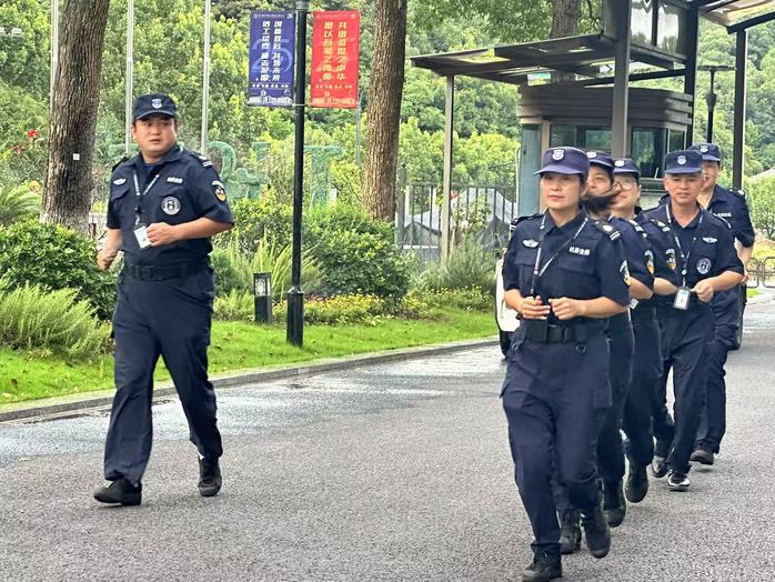 保卫人员顶着高温巡逻校园,制服浸透仍奔波值守;监控室内值班员紧盯屏幕,细致监测异常情况。日夜坚守中,他们为校园稳定筑牢第一道防线。