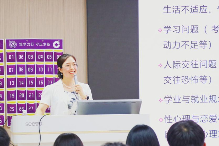 聘任结束,我院心理健康与生命教育中心主任马晨曦为新任班助开展心理健康培训,了解大学生心理健康的核心标准、常见心理困扰的表现,在校园内传递“理解、接纳、支持”的心理氛围,促进学生间的心理互助。