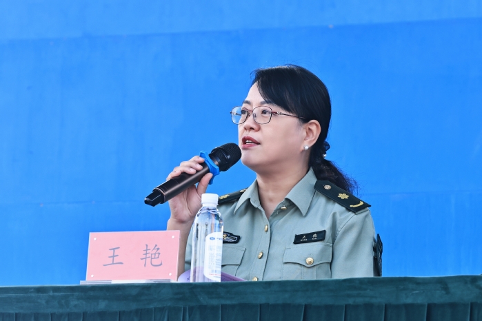 徐毅鹏发表讲话。他代表学院向全体教官致以诚挚感谢,向带训教师、后勤保障人员表示亲切慰问。徐毅鹏指出,“国无防不立,民无防不安”,大学生军训不仅是加强国防后备力量培养的重要途径,更是学院全面推进学生素质教育的重要举措。徐毅鹏向参训同学提三点要求:一要统一思想认识,化爱国之心为报国之行;二要树立优良作风,做到令必行、禁必止;三要磨砺坚强意志,发扬人民军队革命精神。